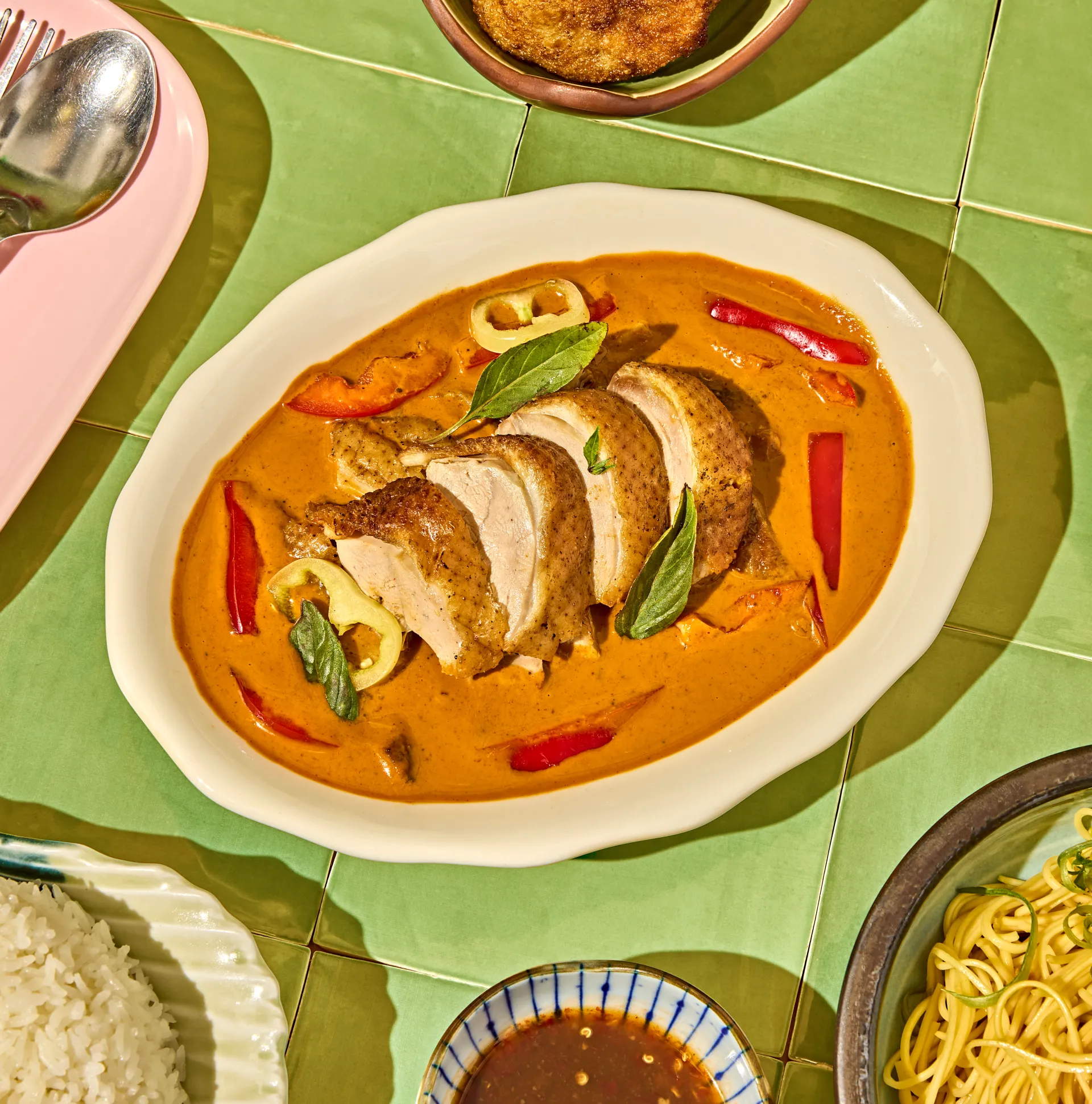Inspired by his upbringing in Bangkok and the Thai capital’s second-hand Chatuchak Weekend Market, Arpapornnopparat will meld grilled chicken and pork on a menu, proteins often sold by the pound and packed for takeaway or eaten on-site in Thailand. He and Yuon were also inspired by the smoky flavors of Texas barbecue, but wanted to serve tangy, acidic, and sweet flavors to counter the rich meats. For Yhing Yhang, he’ll marinate pork jowl in honey, cilantro root, and garlic, and slice it like Chinese char siu pork. The chicken will be marinated in lemongrass, cumin, garlic, and cilantro root, and then blistered over wood fire..”